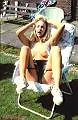 Bridget is just wearing a summer dress, a thong and tennis shoes. bridget just messes around in the garden, as you do.