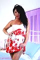 Leah chose not to wear any underwear and after a bit of teasing showing her stocking tops she couldn't resist showing her shaven pussy. She then takes her red heels off and her dress and spreads her pussy some more.
