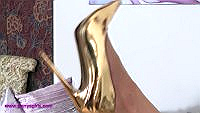 Leah in a Gold dress, gold heels and fully fashioned stockings.