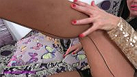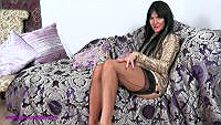 Leah shows off her lovely legs and stockings then takes her dress off for some pussy spreading. We get some nice cllose ups of Leah masterbating and a nice long view of her little anus while she does this.