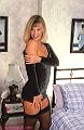 Louise is wearing yes a green dress, black thong, black seamed stockings and high heels. Old and quite tame now (the set not Louise) but she is still horny.