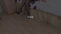 Lucy right from the start is showing her stocking tops and lots of voluptuous white breast. Lucy talks about her heels and stockings, and her breasts just manage to stay in her dress. Lots of leg crossing, heels and stocking top views and close ups.