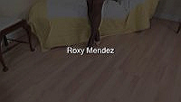 After this Roxy rips her tights at the vagina region, shows us her nipples through her sheer bra and then takes it off, getting those lovely tits on show.