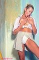 Susie is wearing a tie front shirt, a short skirt, a white thong and boots. Susie is busy decorating but she soon gets her kit off and starts playing with her big tits.